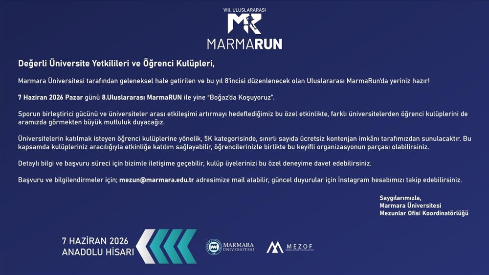 Detaylı bilgi için mezun@marmara.edu.tr adresi üzerinden iletişime geçebilirsiniz.